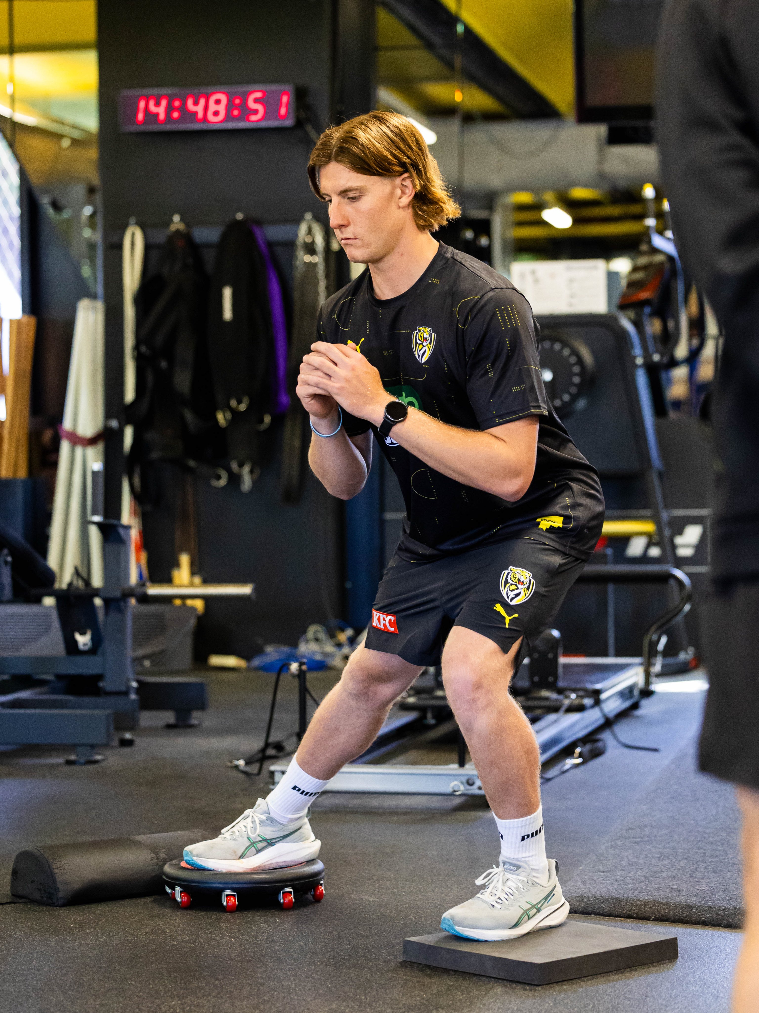 New recruit Patrick Retschko burst onto the training track for his first run in his new colours, immediately looking at home as he reunited with some of his junior teammates. The 19-year-old showcased his trademark run-and-carry and impressive handball speed throughout the sessions. He also wears elite green boots. Worth keeping your eyes out for them!