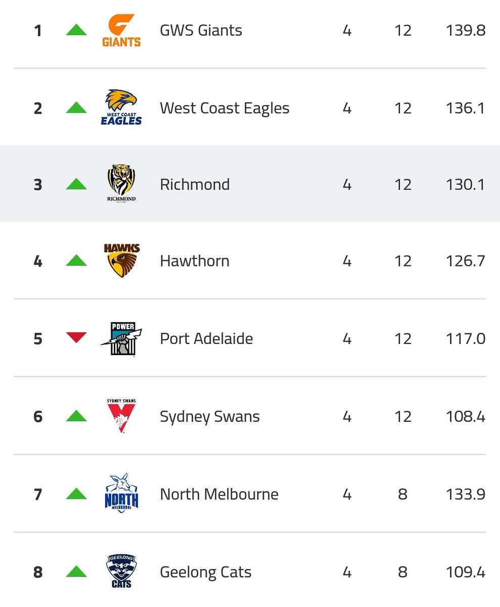 This site is predicting us to finish top at the end of the H/A season: http://www.liveladders.com/AFL/