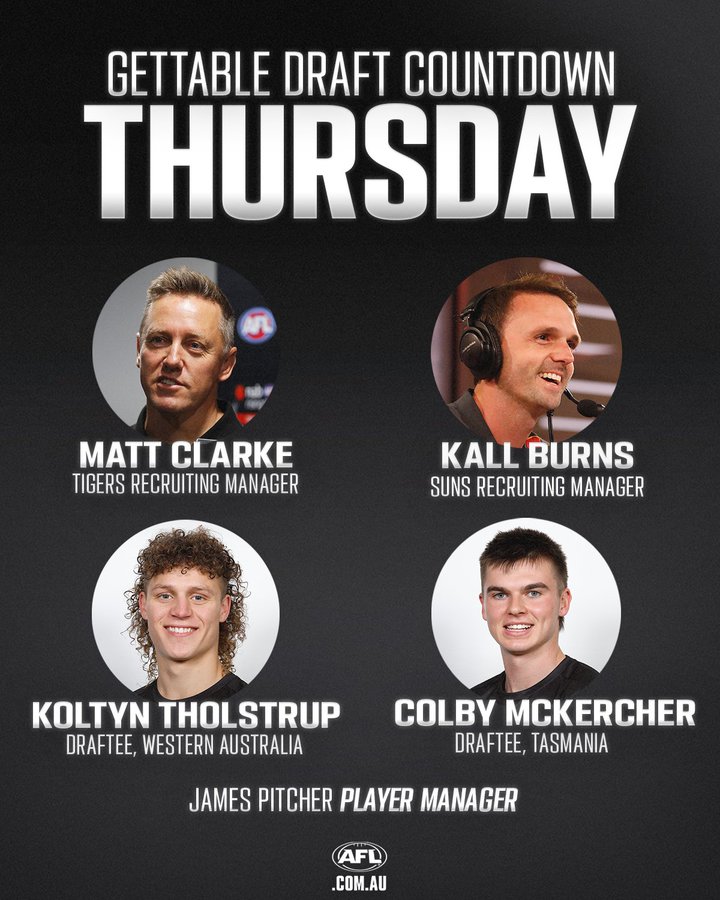 Clarke said the Tigers were optimistic about the talent that would be available later in the pool when they are selecting, as well as the options that will present through the Rookie Draft and Pre-Season Supplemental Selection Period (SSP).