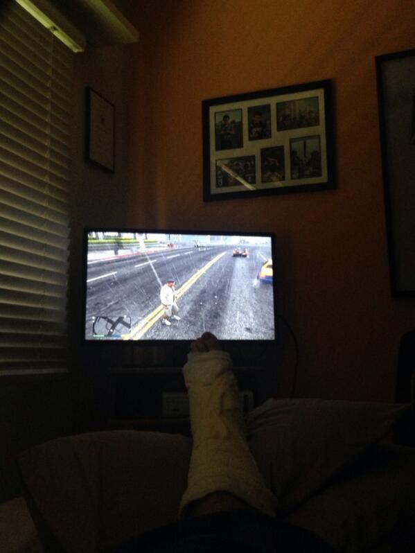 Bugger GTA5. If he's housebound, he should have the 1980 grand final on high rotation and hand passing the footy off the ceiling. Kids these days have too many distractions.