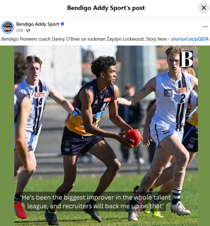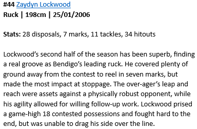 The week before that, he was also named in the bests for the Murray Bushrangers against the Geelong Falcons.