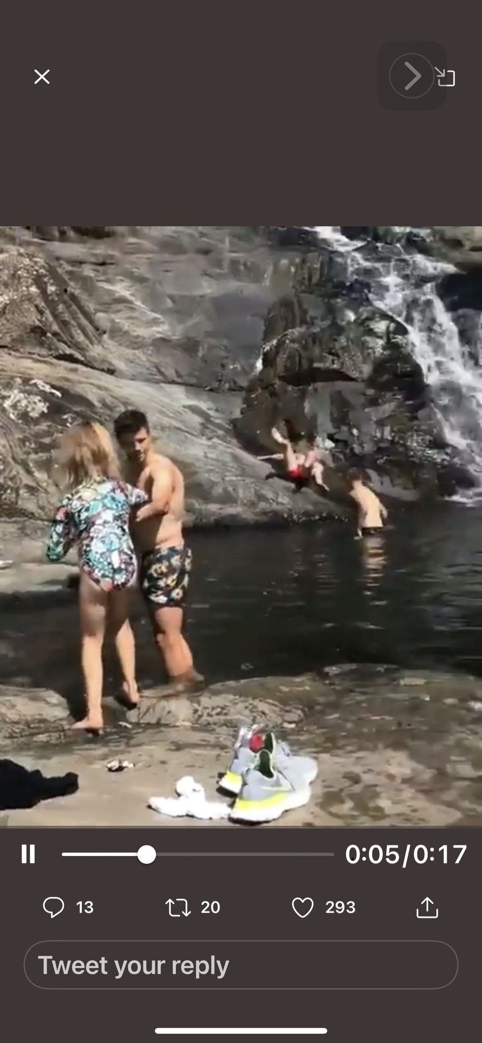 I can't find the footage of it online but on 7news tonight they showed while spending time with Cotch and Dusty, Caddy slipped on a rock by a rock-pool and went for a sixer falling down and bouncing into the water lol. Luckily, he only ended up with some bruising around his derriere.