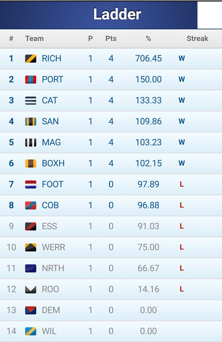 Re: VFL: Richmond vs North Ballarat @ Punt Rd, Sunday April 16