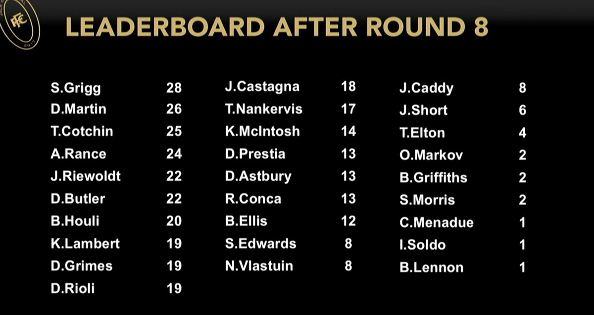 8.50pm - Bill Cosgrove/Harry Jenkins Best First Year Player Award