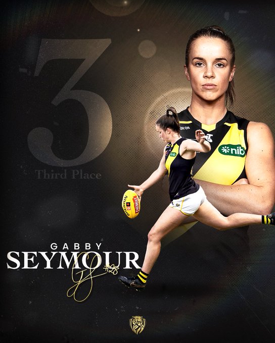 Consistent ruck Gabby Seymour (24 votes) finished on the podium for the third time in the past four seasons highlighting her influence on the side.