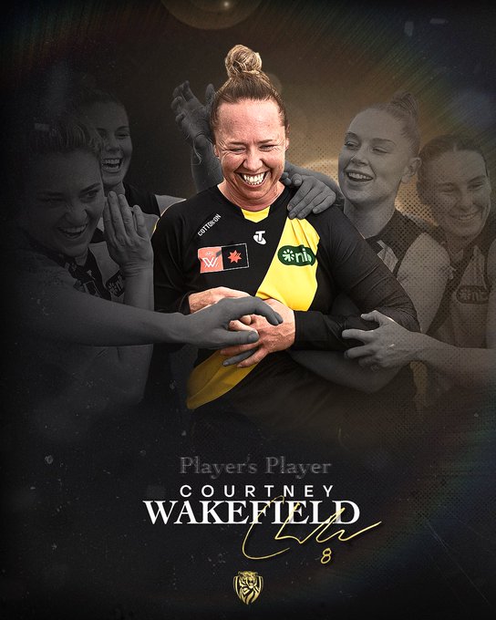 Recently-retired key forwarda Courtney Wakefield capped off her final AFLW season with the Leading Goalkicker Award after booting 14 majors for the season, as well as the Player's Player Award, underlining her high standing at the Club.