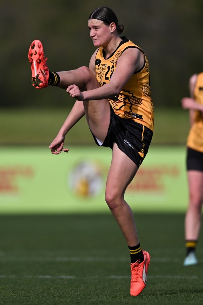 An athletic and versatile goalkicker who was named at centre half-forward in this year’s Under 18 All-Australian team — 12 months after being named in the same line-up as a bottom-ager. Representing WA, Wolmarans averaged 12.5 disposals, 4.2 marks and 1.5 goals per game at the national championships, with her match-winning four-goal performance against the Allies the standout game. What makes Wolmarans such an exciting AFLW player is her attack on the ball and competitiveness, both in the air at ground level. Couple that with her strong marking ability and you’ve got a forward who’s going to be hard to contain at the top level.