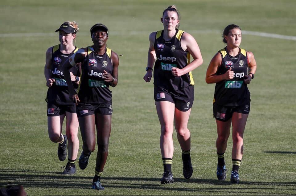 Three AFLW squads – Richmond, Melbourne and the Western Bulldogs – took advantage of the restrictions being lifted to train in hot conditions on Sunday morning.