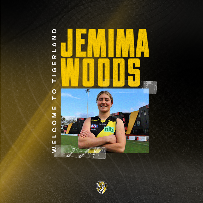 Richmond has signed 19-year-old key forward Jemima Woods as a delisted free agent on Wednesday afternoon.