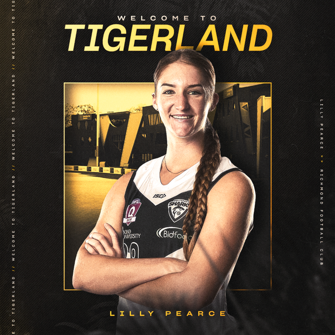 Richmond has signed 20-year-old ruck Lilly Pearce to its list as a replacement player for the upcoming AFLW season.