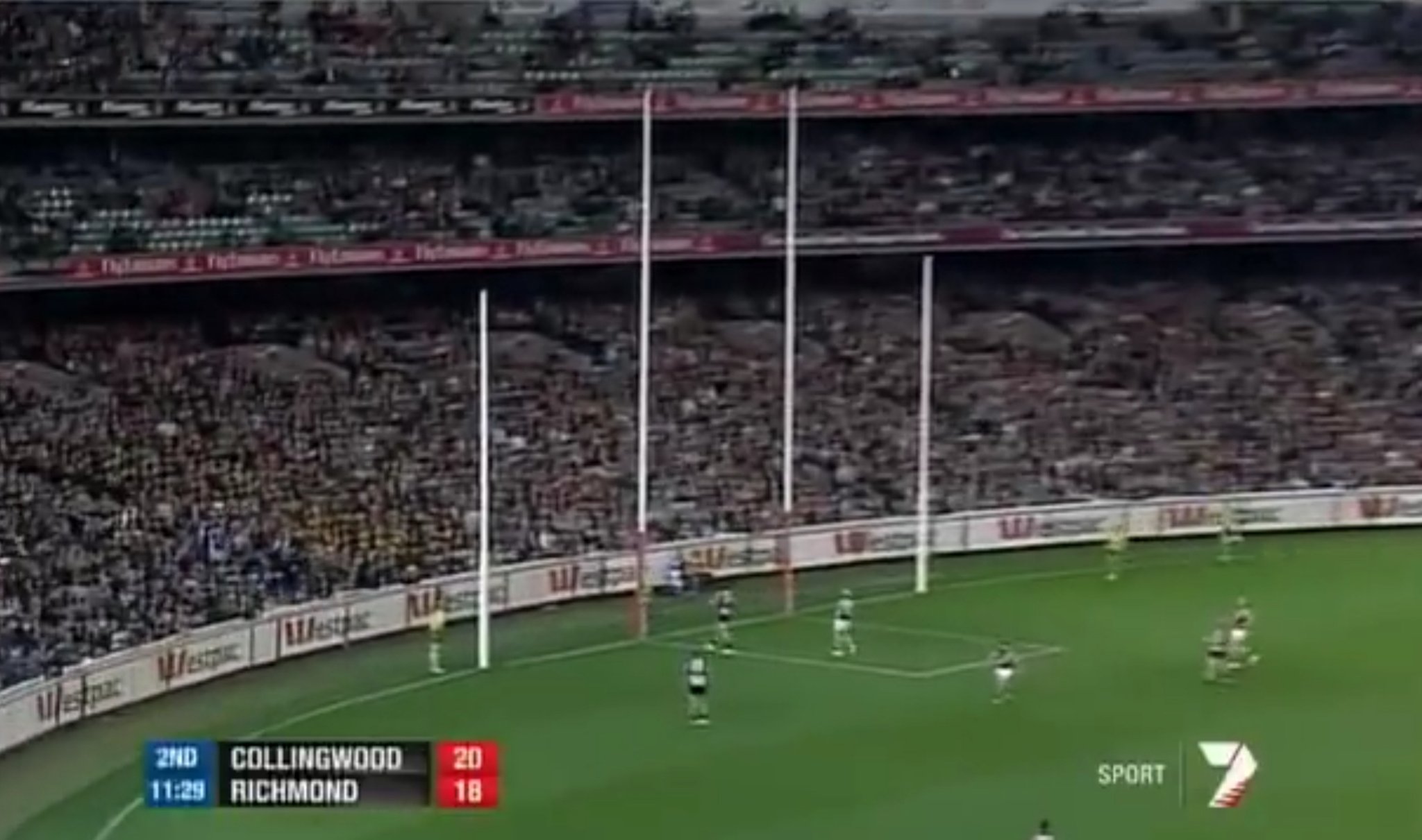 A reminder to Richmond supporters where they were in 2011 with a home fixture against Carlton at the Punt Road end of the MCG. Empty seats + getting smashed every game.Never forget who you once were while we propped you up.