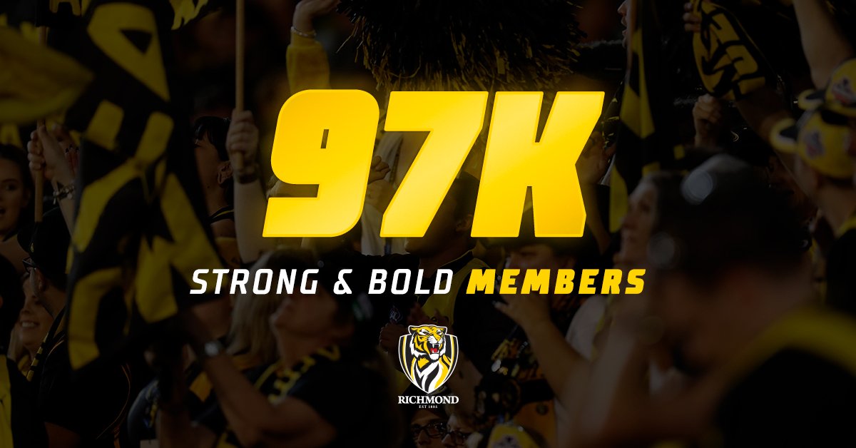 The Tigers could become the first sporting team in the southern hemisphere with 100,000 members - beating Collingwood to this impressive mark.