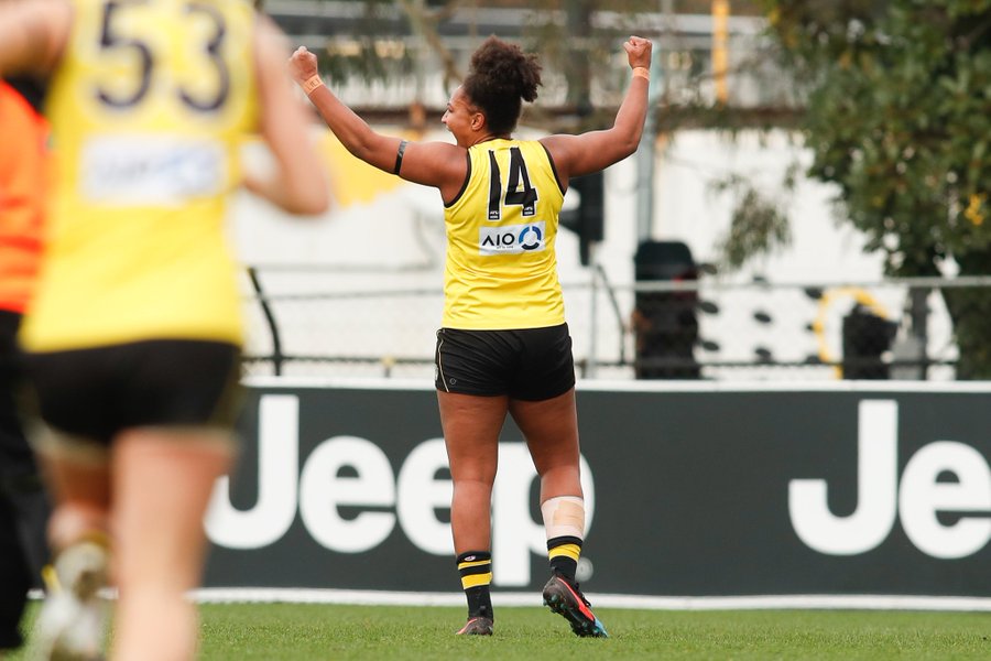 Highly-anticipated Richmond Women’s debutant Sabrina Frederick slotted Richmond’s first of the day in the second quarter, marking Katie Brennan’s pass then converting her set-shot with ease.