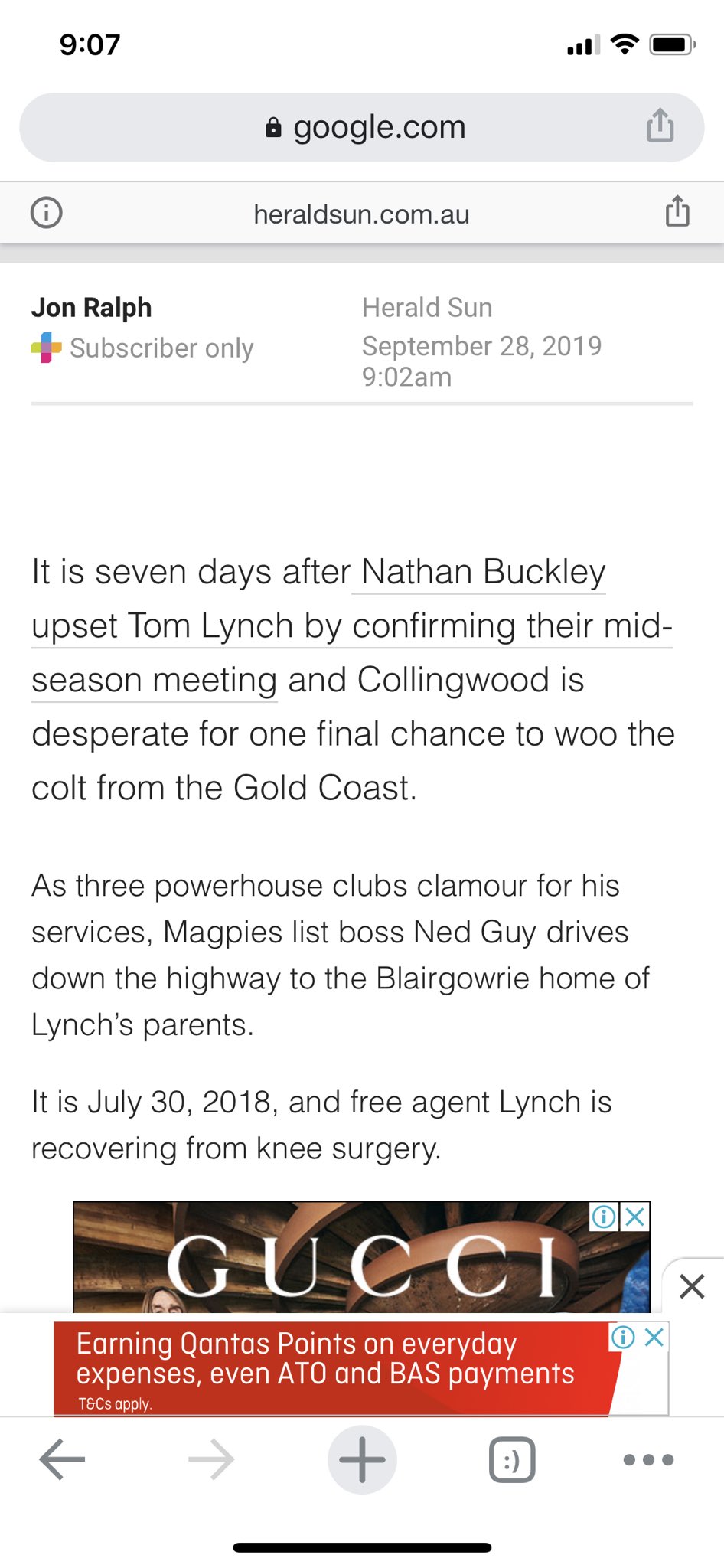 Collingwood today trying to claim they never were after Lynch .First their footy manager Walsh on MMM said they never were. Then Eddie chipped in and claimed they only phoned Lynch once and left it there. Yeah right!