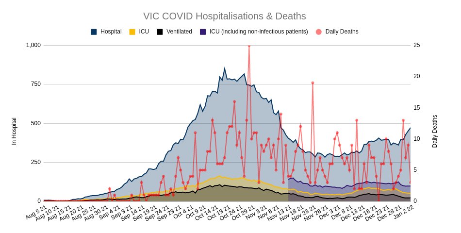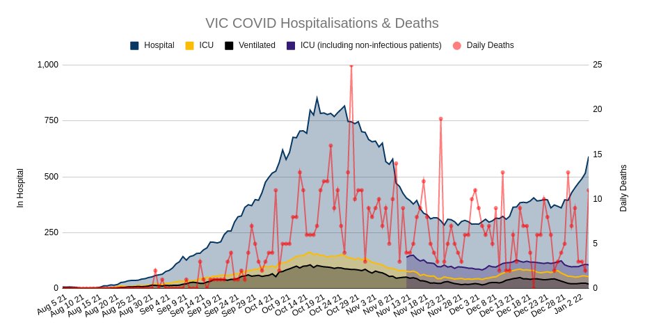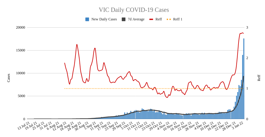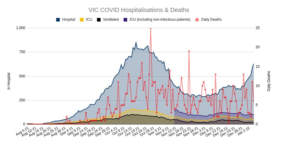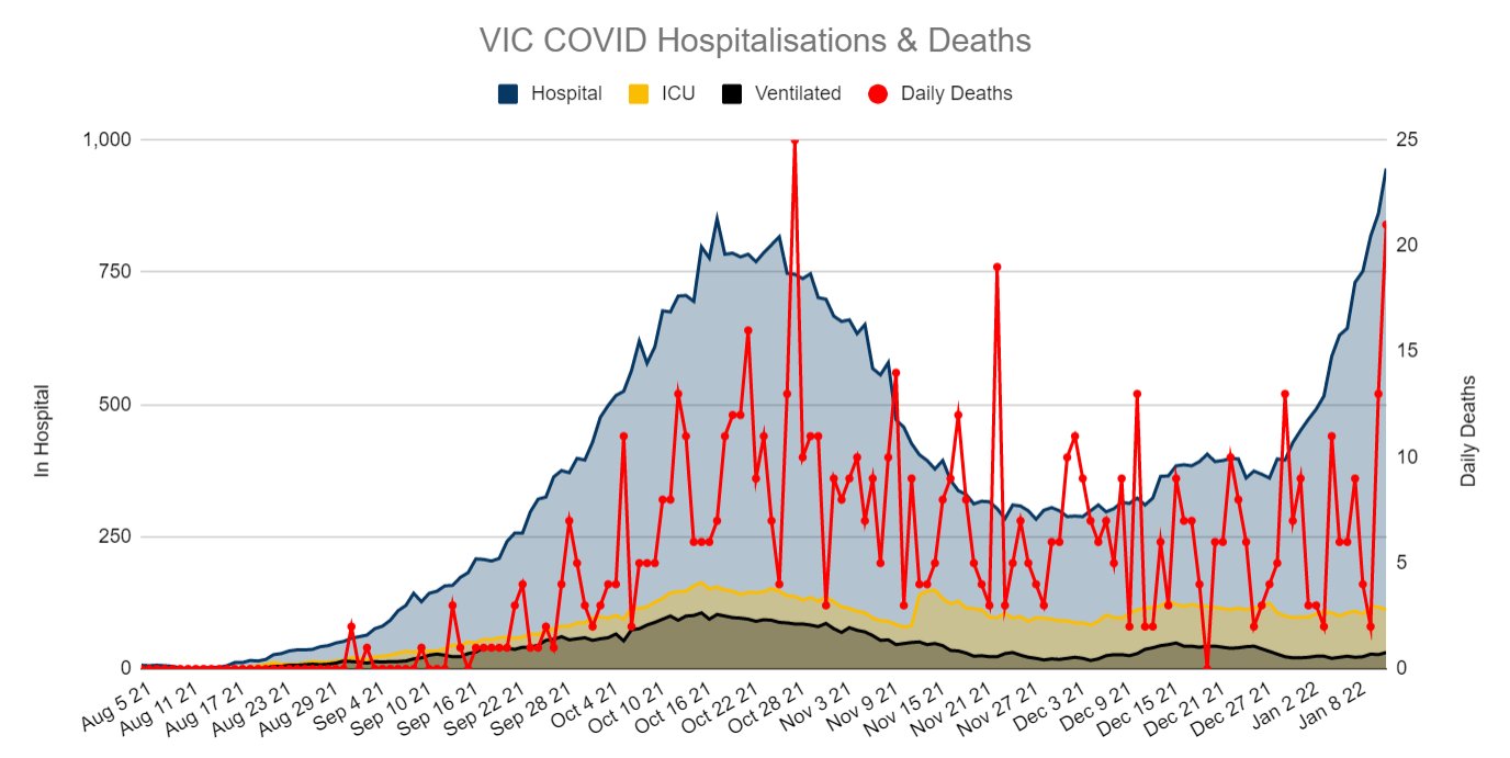 VIC - 40,127 new cases (PCR 21,693, RAT 18,434). 946 in hospital. 112 in ICU (31 on ventilators). 21 deaths.