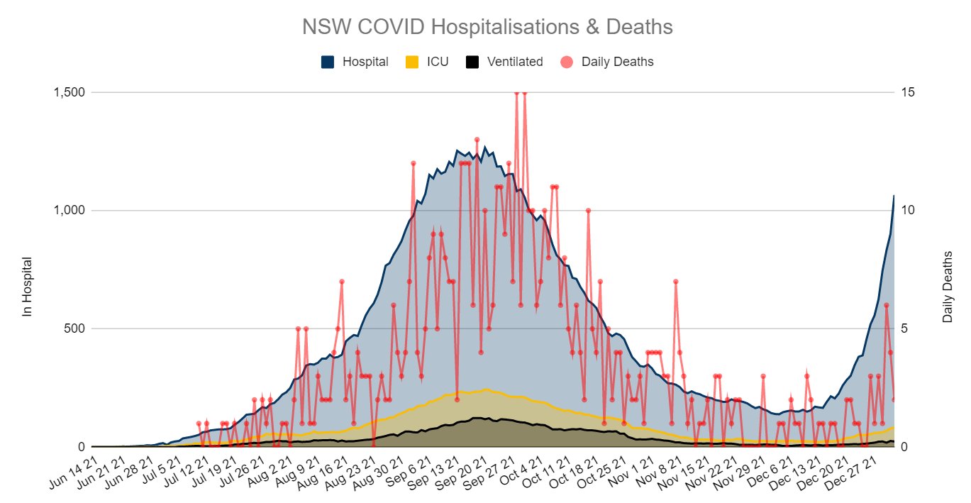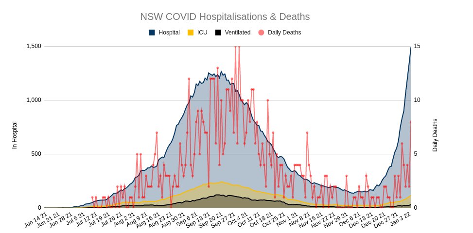 - 50% of ICUs are unvaxxed (despite only making up 7% of the NSW population).