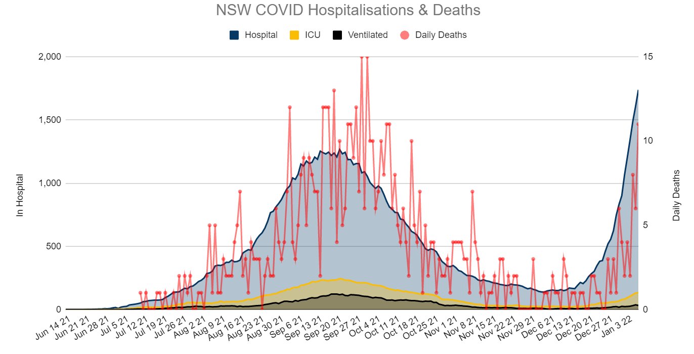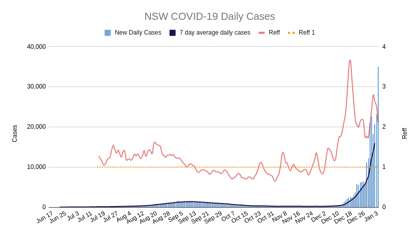 NSW - 34,759 new cases (PCR only). 2242 in hospital. 175 in ICU (54 on ventilators). 21 deaths.