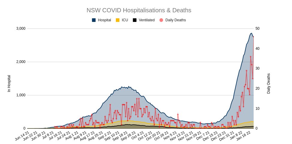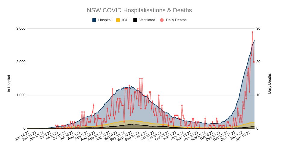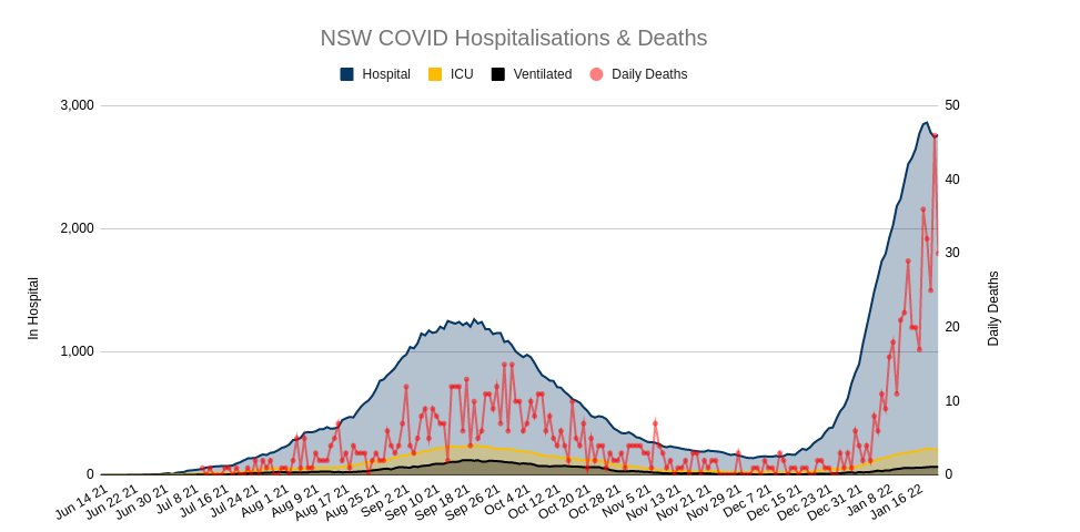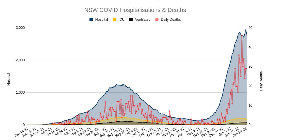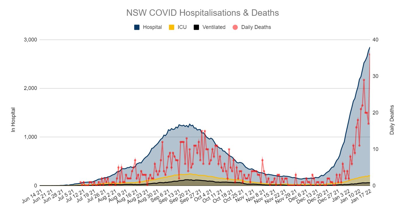 NSW - 29,830 new cases (PCR 16,067; RAT 13,763). 2850 in hospital. 209 in ICU (63 on ventilators). 36 deaths.