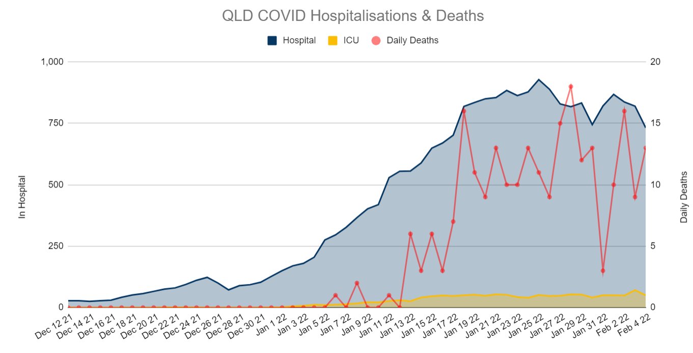 QLD - 6596 new cases. 404 in hospital. 36 in ICU (20 on ventilators). 12 deaths.