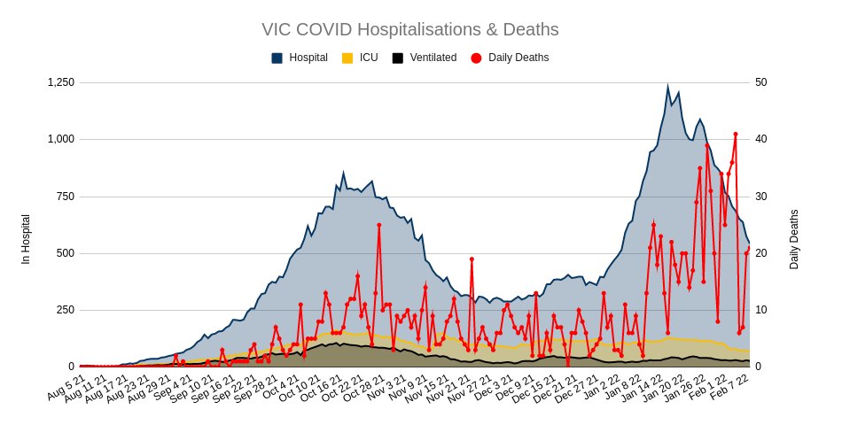 VIC - 9908 new cases (PCR 3627; RAT 6281). 542 in hospital. 71 in ICU (27 on ventilators). 21 deaths.