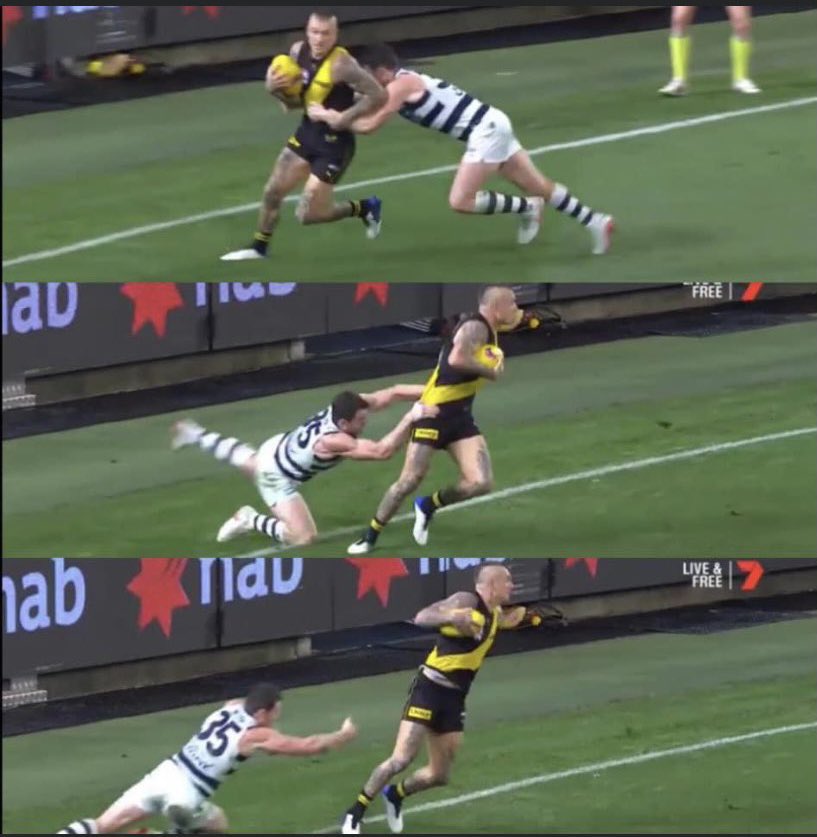 Tigers superstar Dustin Martin, who’d eventually claim a third Norm Smith Medal, kicked a stunning and crucial goal just before half-time to reduce the margin to 15 points.