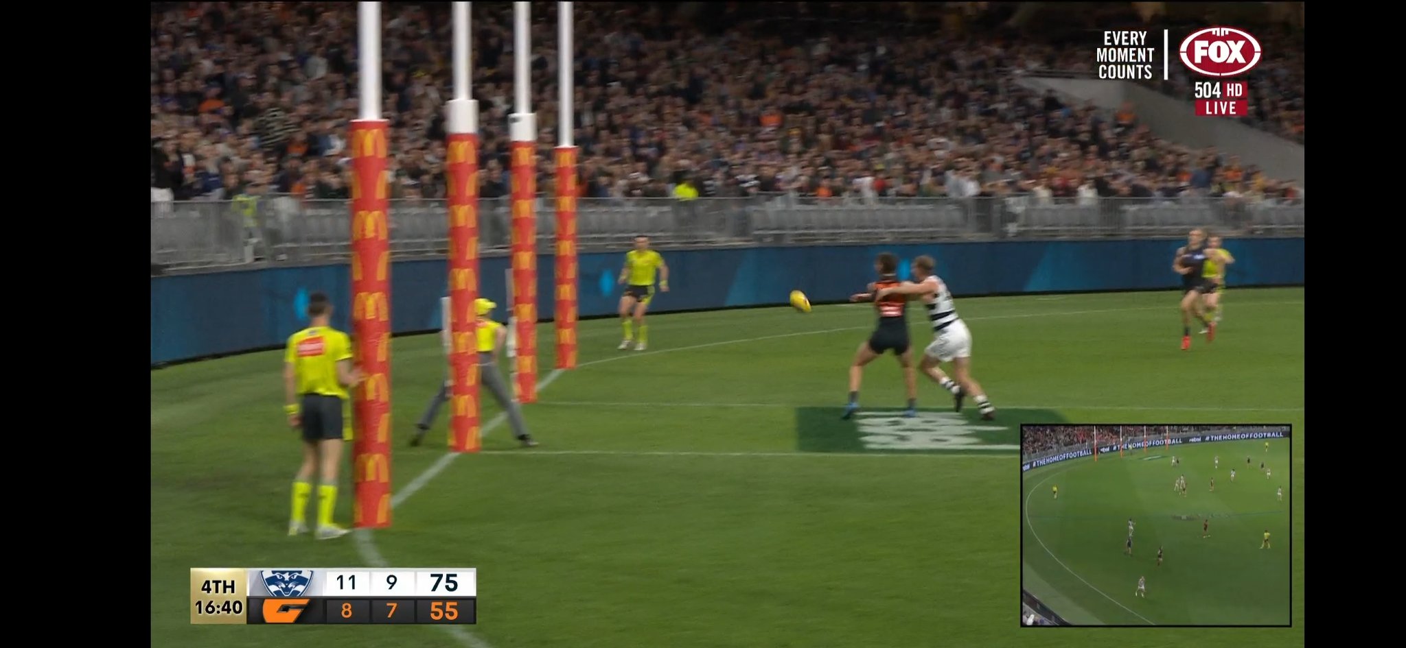 Can someone explain how Henderson got that free on the GWS goal-line? Totally changed the momentum of the game as Geelong ran it down the other end for the goal.