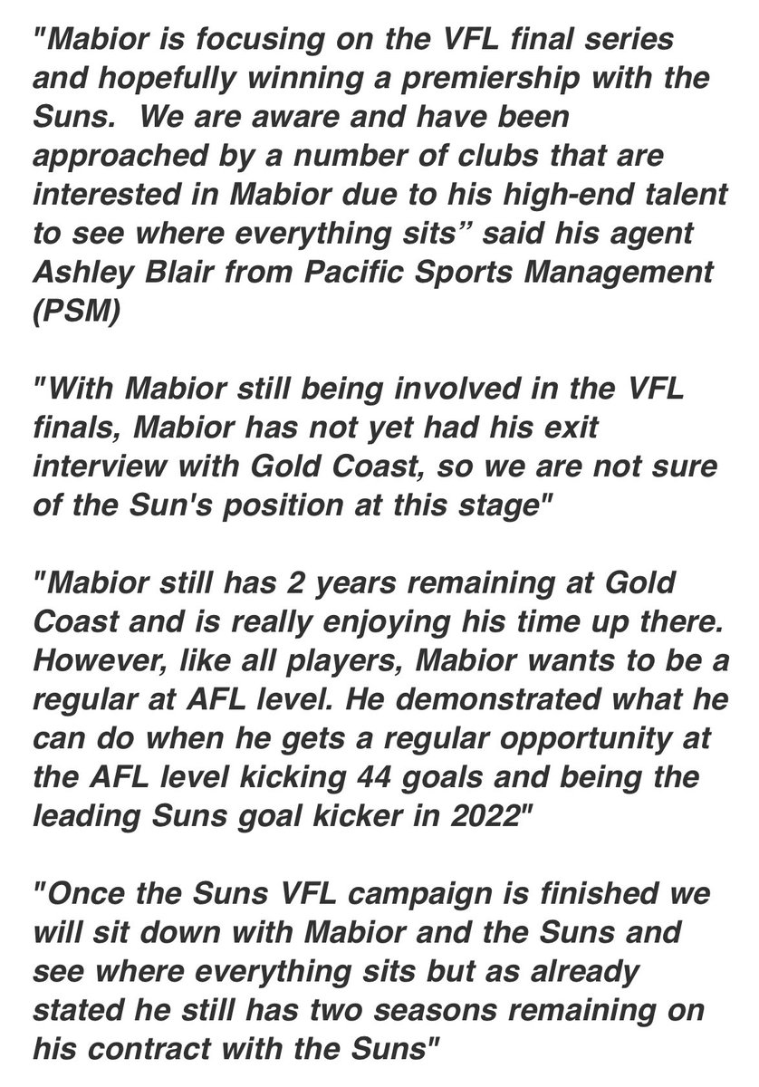 Mabior Chol’s manager Ashley Blair says “a number of clubs” have approached him regarding the player’s future. @1116sen