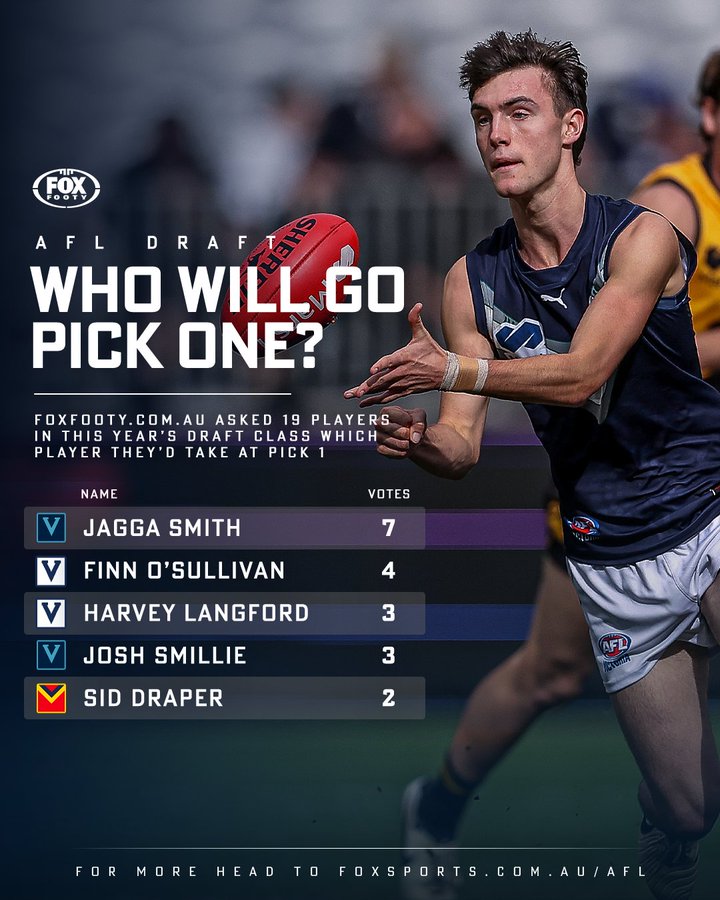 https://www.foxsports.com.au/afl/draft/afl-draft-2024-prospects-pick-1-predictions-jagga-smith-favourite-josh-smillie-finn-osullivan-harvey-langford-rankings-mock-order-date/news-story/63e5d4ac12292e1e2ed0fc1a83ce8bdf