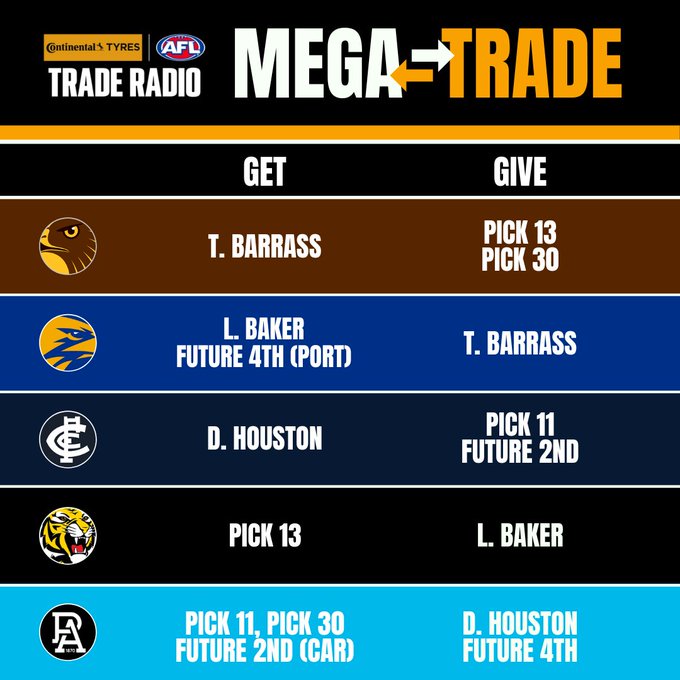 Also pass. Same type of midfielder we already have. I really wouldn’t be trading in any mids. We already have TT, Hopper and Prestia as experienced mids. We’re gonna draft atleast 2 top end mids, need to ensure they are actually getting time in the middle and don’t end up like Sonsie shafted into the fwd line.