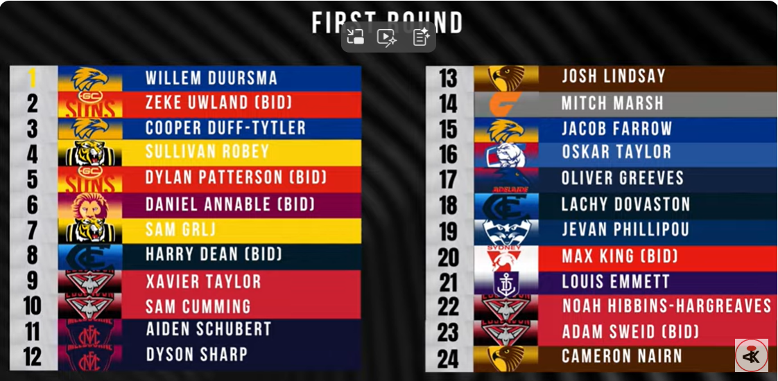 Re: 2025 AFL Draft