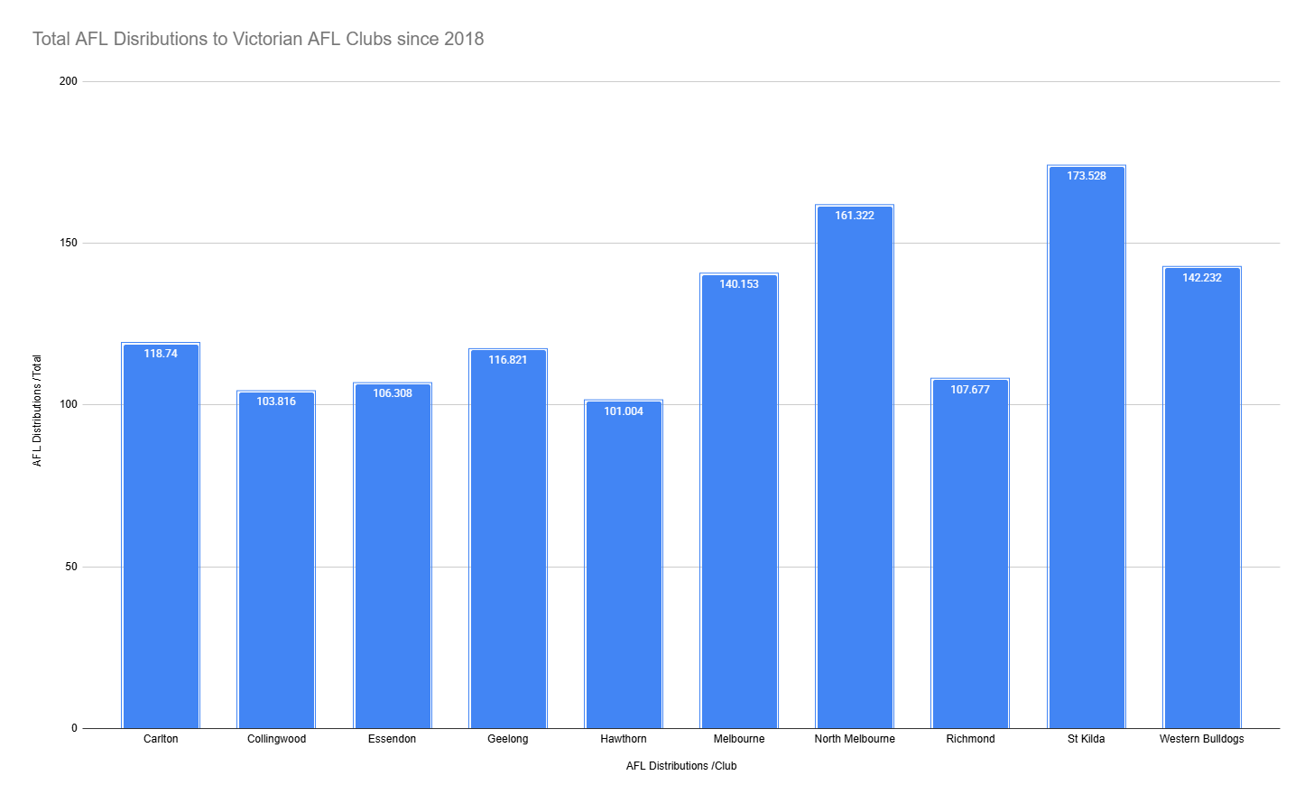 Bear in mind that ALL clubs are entitled to a base distribution, as well as AFL club support, signage, and AFLW funding - and this is included in the distro.