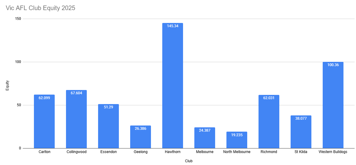 Victorian AFL Clubs are sitting on 825m in assets with 596m in equity, including 119m in cash/equivelants.