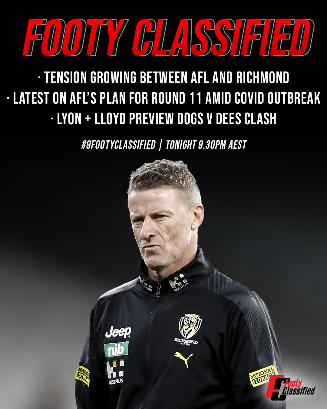 “There is no doubt there is a war going on behind closed doors between Richmond and the AFL. Damien Hardwick front man, but he’s not the only man,” she told Channel Nine’s Footy Classified.