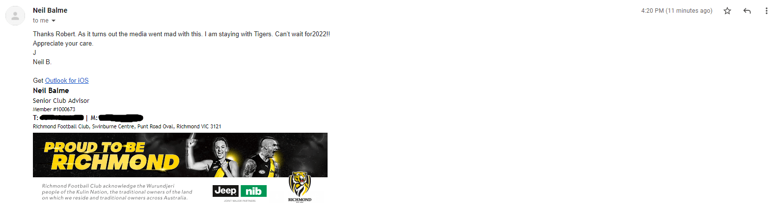But a health condition meant Balme stayed at the Tigers, in a “godfather” role in their footy department.