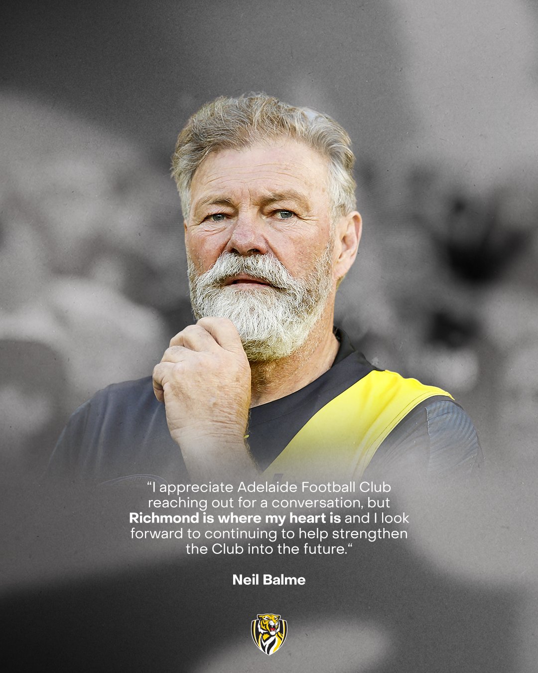 Sometimes we get a bum steer in this caper and it’s not always straightforward. Nevertheless,  I was premature in declaring Neil Balme in Crows colours. He stays at Richmond (again!) which is great news for them.