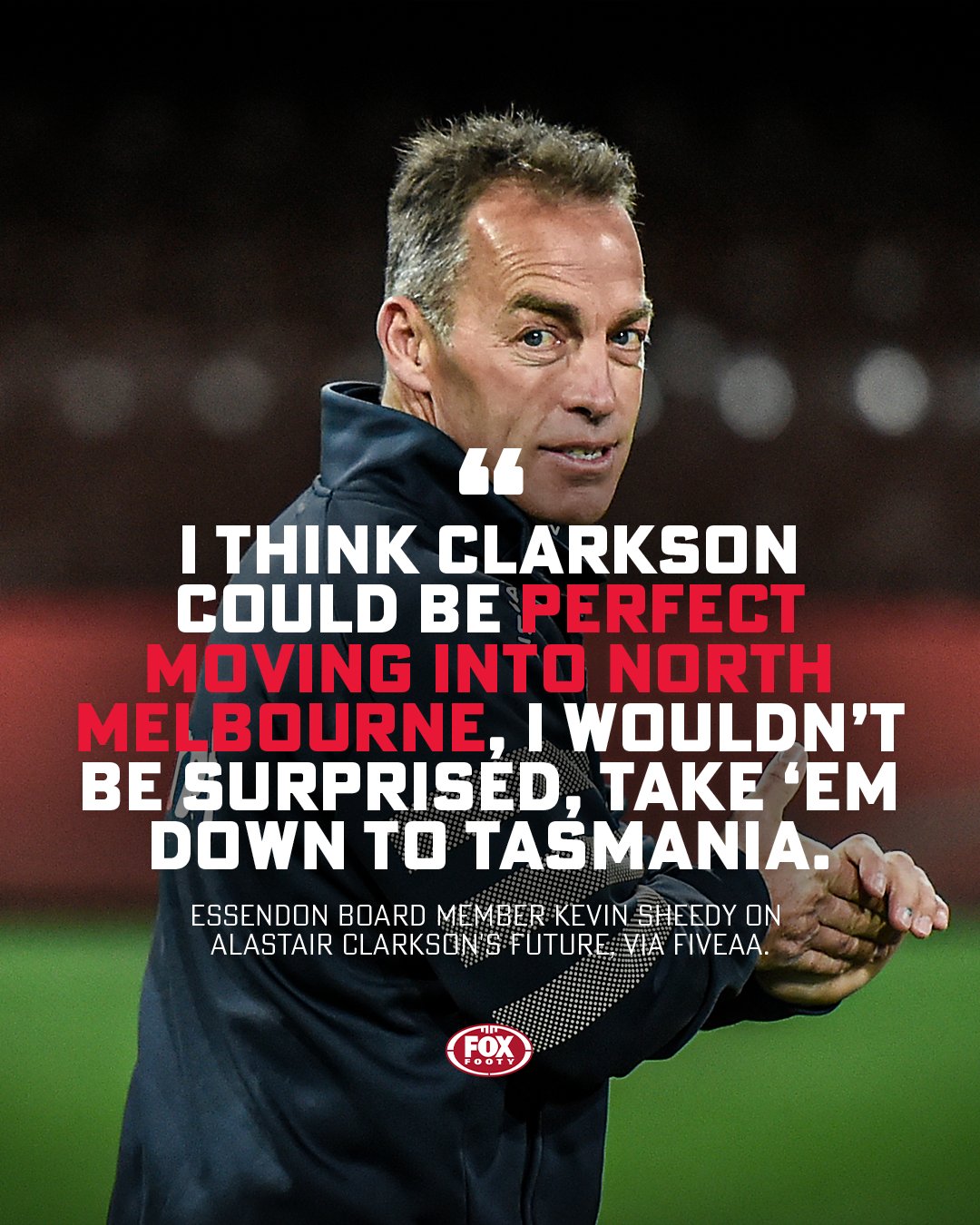 Ben Rutten’s role as coach at Essendon is “untenable” with senior club figures aware Alastair Clarkson is interested in the job according to the Herald Sun’s Jon Ralph.