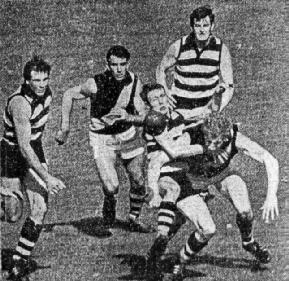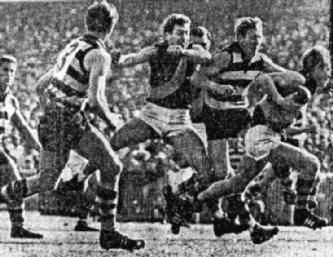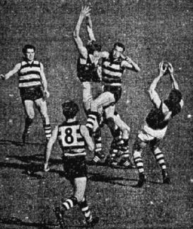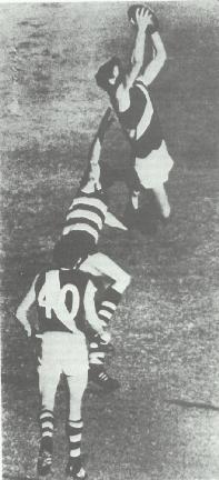 When goals were hard to get 6 ft. 5 in. John Ronaldson kicked two magnificent ones, yet Geelong's last four scoring shots, not counting Bill Goggin's marked kick, produced four points. It was as simple as that.
