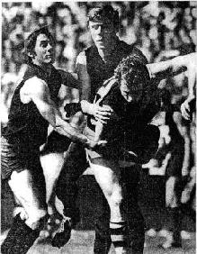 He stood up to what seemed overwhelming Carlton ruck strength and came back for more. He outmarked John Nicholls and more than broke even in the hit-outs.