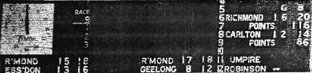 Richmond:- Stewart 3, Hart 3, Sheedy 3, Balme 2, Walsh, Roberts, Carter, Bartlett, Green.