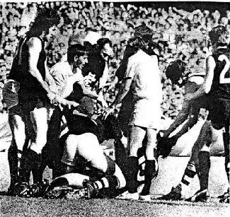 And Kevin Sheedy. Now there's a man with guts. He was magnificient. He really set us on the road to victory in the first quarter with creative handball, sheperding, plain hard, slogging work and, of course, those invaluable three goals.