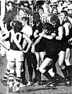 The run lasted until Carlton coach John Nicholls missed a snap from the goal square. Had that kick gone straight - and it should have done - the Blues might have made things interesting.