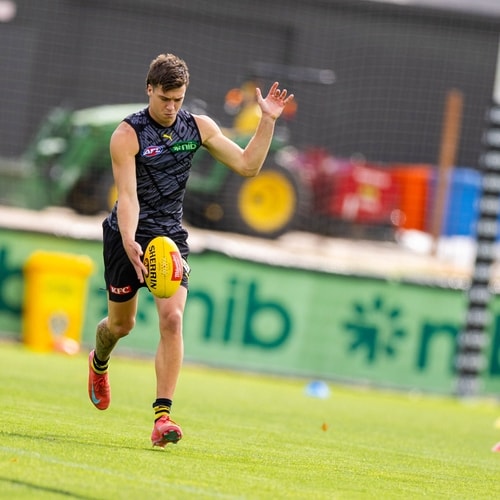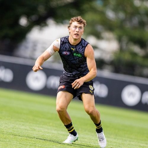 Before his injury setback, the 28th overall pick in the 2024 AFL Draft demonstrated why he belonged at the elite level, making an immediate impact in his debut game during the Round 9 victory against West Coast, finishing the contest with six disposals, three tackles and a goal.