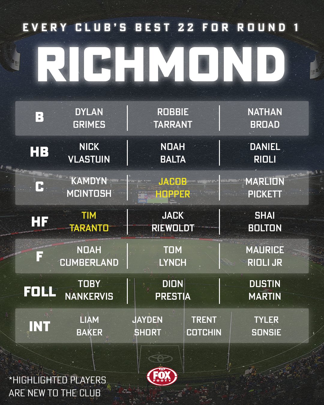 Richmond had only one player on its injury list before its devastating elimination final loss to Brisbane, with Dylan Grimes well and truly set to reclaim his spot on the last line of defence in 2023. The Tigers have also only lost one player from that squad of 26 due to the retirement of Shane Edwards, and have added two first-class midfielders in former Giants duo Tim Taranto and Jacob Hopper. The high quality of the recruits has pushed Tyler Sonsie, Jack Ross and Jack Graham to the emergency list, with Noah Cumberland also desperately unlucky to miss this 22. Of the next generation coming through, Judson Clarke as well as Tom Brown and Sam Banks (who are both yet to debut) are likely to get a crack at some point in 2023, while Hugo Ralphsmith, Jason Castagna and Thomson Dow also know what's required at AFL level.
