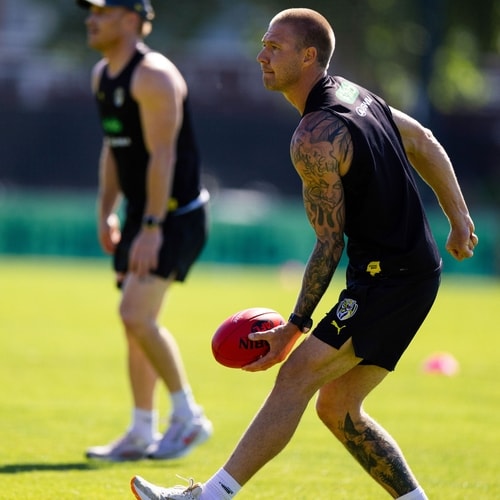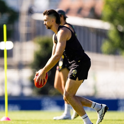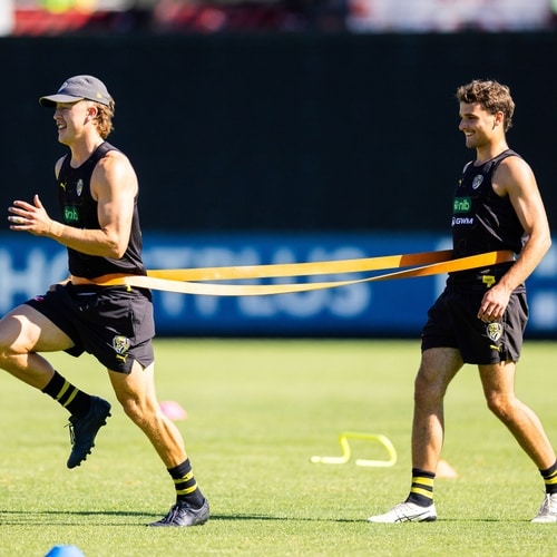 By Friday, it was full steam ahead on the hottest day of the week, with a familiar and popular face in Richmond great, Kamdyn McIntosh, watching on as the side completed their run through with voices positive and loud.