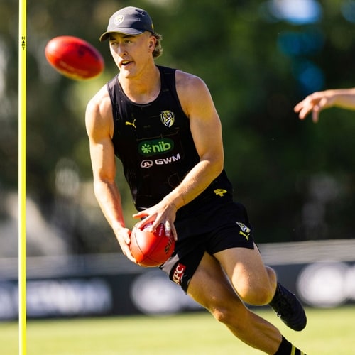 Maurice Rioli was back to his speedy best, zipping around the oval in a multi-kick drill, hitting up leads with intent and pace in his flashy new orange boots. Rioli is looking primed to enter 2026 fit and firing.
