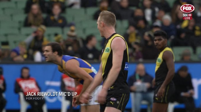Watch the footage in this link: https://www.foxsports.com.au/afl/teams/richmond-tigers/afl-news-2022-jack-riewoldt-micd-up-video-richmond-vs-west-coast-highlights-sledges-jack-petruccelle-sucks-up-to-umpire/news-story/3a2c5ca83bca5b0fbbb6d4676f4cfd5c